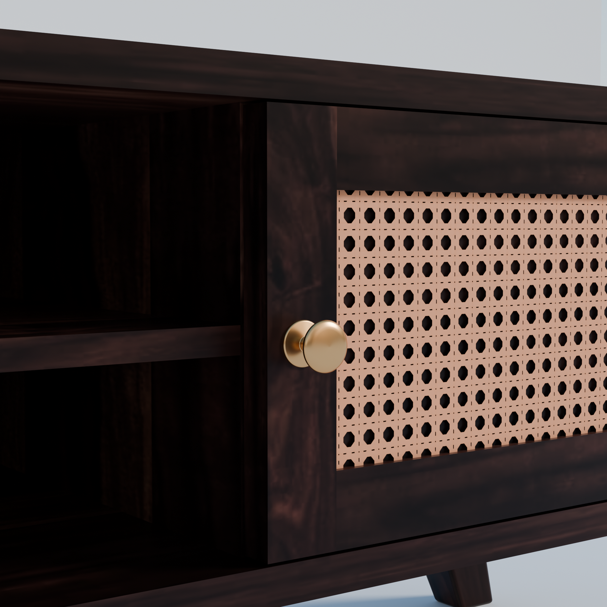 2 side cabinets with cane (jali) panel doors